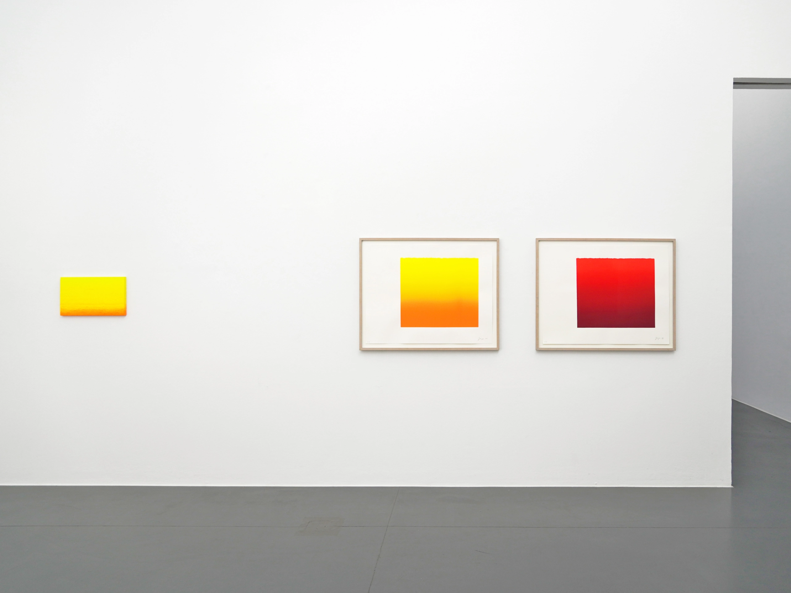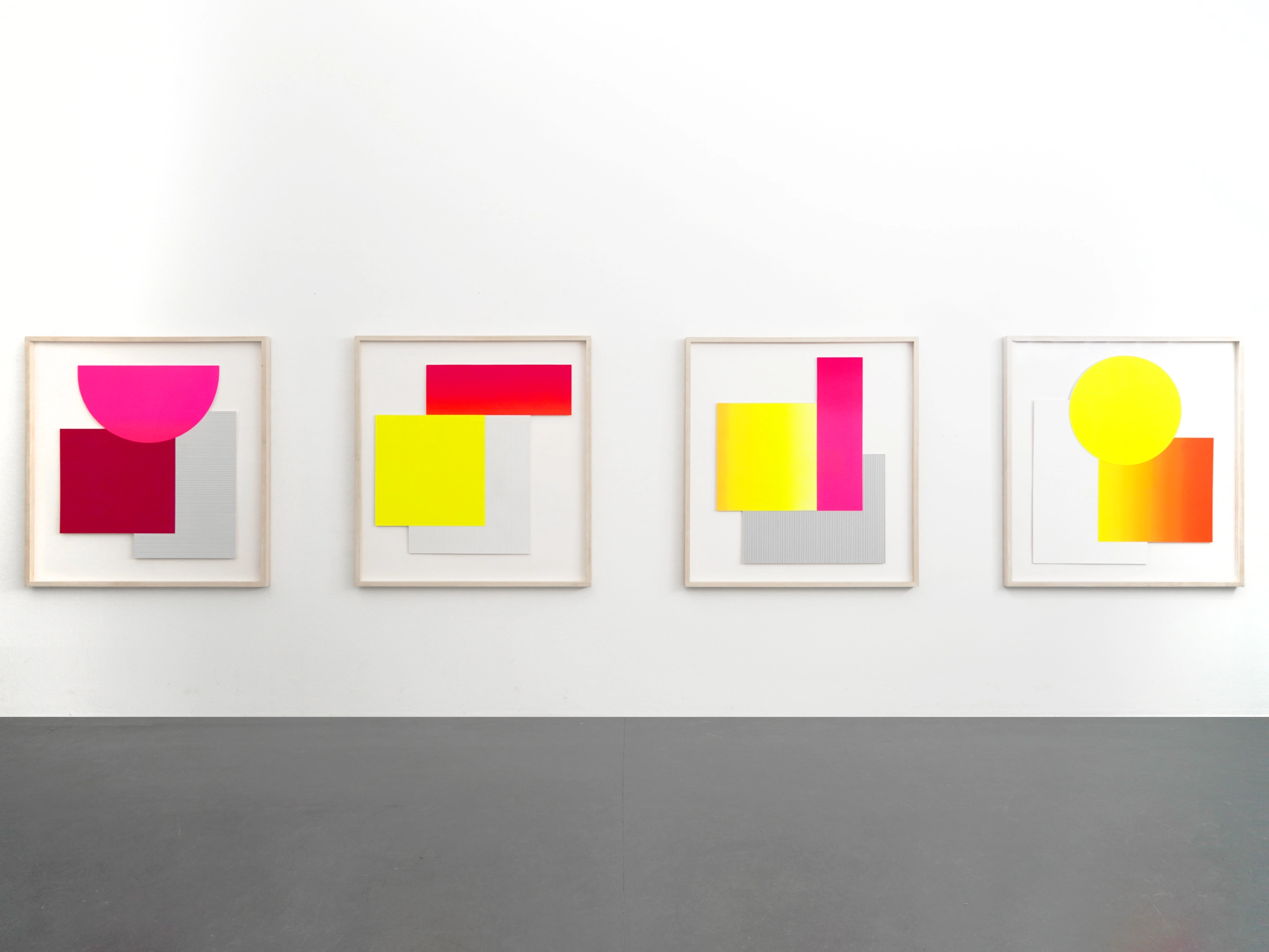 TINTORETTO, Multiples Modulationen (citron, gelb, orange, pink), 2006, Handdruck mit Originalpigmenten/BFK Rives, 300g collagiert auf Holz, Ed. 3/28, sign., dat. und num. je 30 x 24 x 3,5 cm
