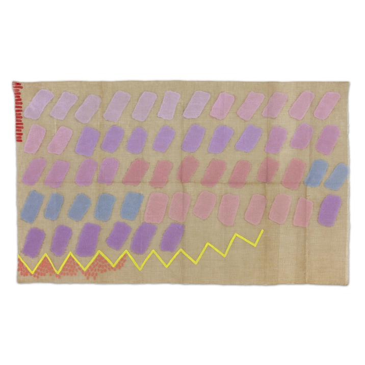 Segni orizzontali giallo e viola, 1975, Acryl auf Leinwand (pattina), 99 x 94 cm